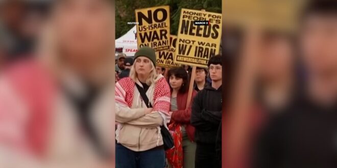 تجمّع متظاهرون سلميًا في أنحاء الولايات المتحدة، الاثنين، للتنديد بالحرب الأمريكية الإسرائيلية مع إيران.