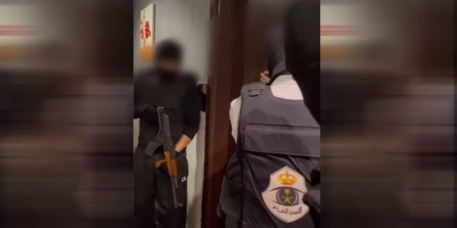 تداول نشطاء على مواقع التواصل الاجتماعي مقطع فيديو يظهر قوة أمنية سعودية خلال عملية مداهمة شقة سكنية والقبض على 3 أشخاص بتهم سلب واعتداء في العاصمة، الرياض.
