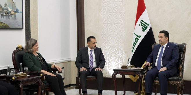 وذكر المكتب الإعلامي للسوداني في بيان،تلقت وكالة الموقف العراقي نسخة منه أن الأخير خلال استقباله نائب وزير خارجية الولايات المتحدة الأمريكية فيكتوريا نولاند والوفد المرافق لها، واستعرض معها العلاقات الثنائية بين البلدين.