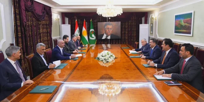 وجرى خلال اللقاء تسليط الضوء على الأوضاع السياسية في العراق، والخطوات المتعلقة بالعملية السياسية وانتخاب رئيس الجمهورية، إلى جانب تشكيل الحكومة العراقية الاتحادية الجديدة.