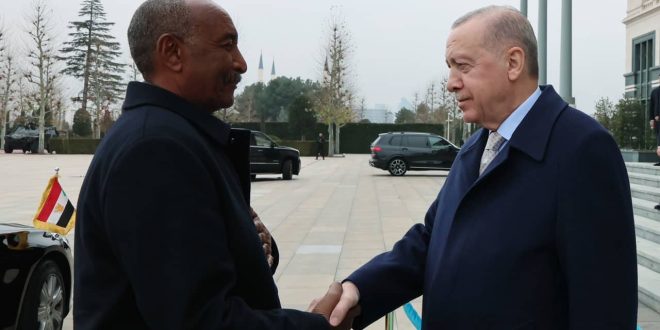 نشرت منصات تركية وسودانية رسمية مراسم استقبال الرئيس التركي، رجب طيب أردوغان، الخميس، لرئيس مجلس السيادة الانتقالي في السودان الفريق عبدالفتاح البرهان، في أنقرة.