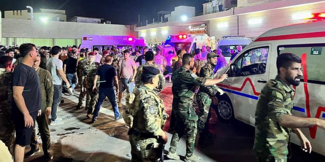 لقي ما لا يقل عن 100 شخص مصرعهم وأصيب 150 آخرين، الثلاثاء، جراء حريق اندلع في حفل زفاف في قضاء الحمدانية شمال شرقي محافظة نينوى العراقية، بحسب ما نقلت وكالة الأنباء الرسمية عن بيان لوزارة صحة نينوى.