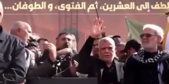العامري من مراسم تأبينية أُقيمت بذكرى مرور أربعين يوماً على اغتيال أميركا