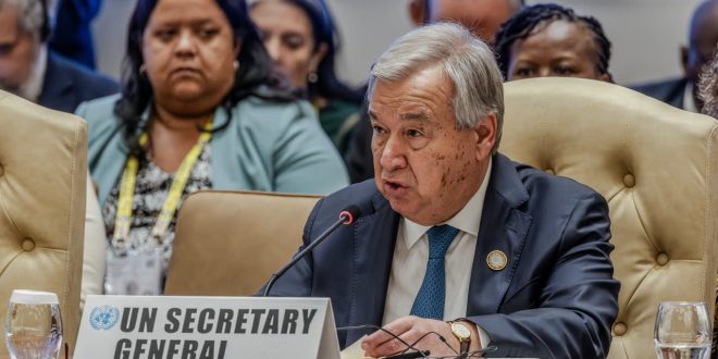 وأضاف غوتيريش في منشور على حسابه الرسمي عبر منصة “إكس”، تويتر سابقا، الأحد، أنه “يجب أن يعترف الجميع بحق الشعب الفلسطيني في إقامة دولته”.