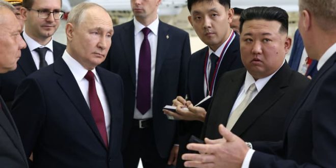 وأبرز نشطاء عددا من التكهنات بعد تحليلهم للغة جسد بوتين خلال هذا اللقاء الذي يأتي عقب حث الإدارة الأمريكية لكوريا الشمالية، على وقف مفاوضات الأسلحة مع روسيا و”الوفاء بالالتزامات العلنية التي تعهدت بها بيونغ يانغ بعدم تقديم أو بيع أسلحة لروسيا”.