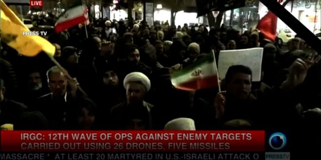 أفادت قناة Press TV الإيرانية الرسمية أن متظاهرين مناهضين للولايات المتحدة خرجوا إلى شوارع العاصمة الإيرانية طهران، الاثنين، بعد مقتل المرشد الأعلى الإيراني، علي حسيني خامنئي.