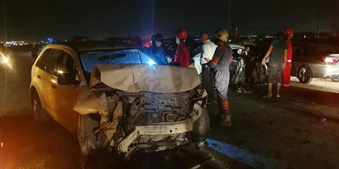 أشخاص أصيبوا بجروح، وبعضهم بحالة خطرة نتيجة تصادم 4 مركبات على طريق عمارة –