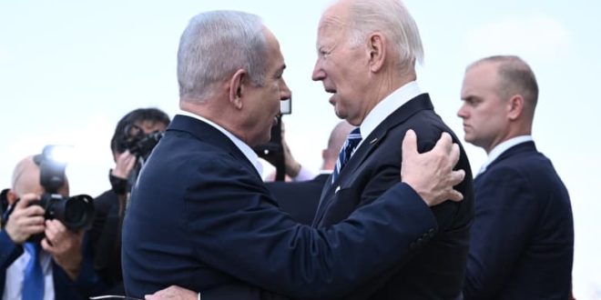 وكان بايدن قد وصل إلى تل أبيب، الأربعاء، حيث التقى برئيس الوزراء الإسرائيلي بنيامين نتنياهو وأعضاء حكومة الحرب الإسرائيلية، وتعهد الرئيس بمواصلة دعم إسرائيل وأخبر نتنياهو أن انفجار المستشفى “يبدو كما لو أنه قام به الفريق الآخر، وليس أنت”، وقال مجلس الأمن القومي يوم الأربعاء إن الحكومة تعتقد حاليا أن إسرائيل “ليست مسؤولة” عن الانفجار.