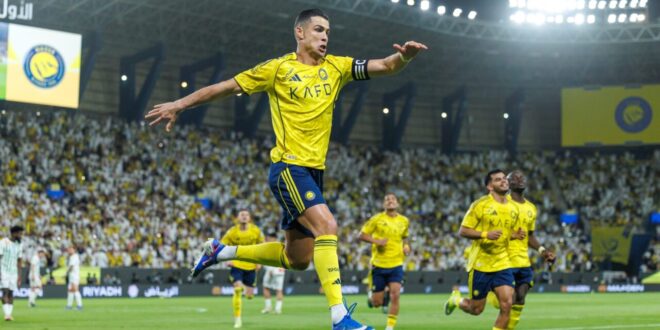 — افتتح النجم البرتغالي كريستيانو رونالدو أهداف مباراة بين ناديي النصر والأخدود، في ملعب الأخير، السبت، ضمن مباريات الأسبوع الـ28 من الدوري السعودي للمحترفين.