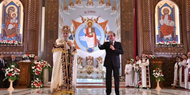 وأضاف السيسي، في كلمة ألقها في كاتدرائية ميلاد المسيح بالعاصمة الإدارية الجديدة خلال تقديمه التهنئة للأقباط بمناسبة عيد الميلاد، ونقلتها وسائل اللإعلام المصرية: “أكثر أزمة نعيشها ونتأثر بها كلنا حاليا مايحدث في قطاع غ-زة والضفة الغربية”.
