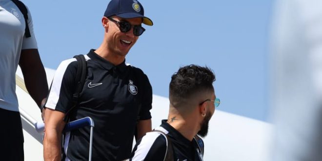 ونشر نادي النصر، عبر حسابه في منصة إكس (تويتر سابقًا)، لقطات مصورة من وصول لاعبيه إلى طهران، وظهر خلالها كريستيانو رونالدو مبتسمًا.