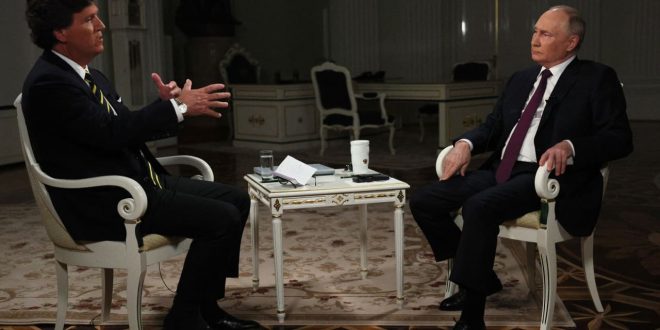 تداول نشطاء على مواقع التواصل الاجتماعي مقاطع وملخصات من مقابلة الرئيس الروسي، فلاديمير بوتين مع المذيع الأمريكي، تاكر كارلسون في العاصمة الروسية، موسكو وسط تفاعل واسع على بعض التصريحات التي أدلى بها.