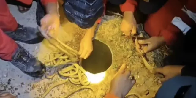 استخدمت الفرق الجرافات وأجهزة القطع التخصصية للوصول إلى قاع البئر.