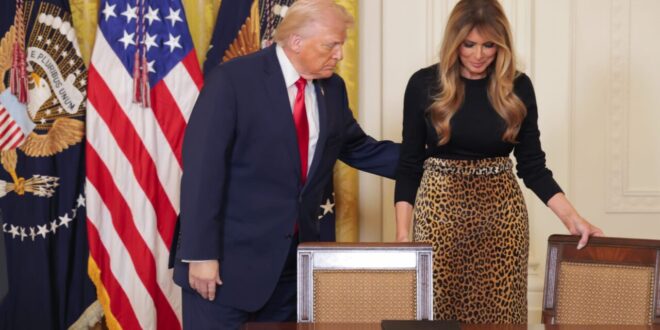 فقد ارتدت ميلانيا معطفًا من جلد العجل بطبعة الفهد خلال حفل الجائزة الدوليّة للمرأة الشجاعة في أبريل/ نيسان الماضي، والذي حمل توقيع المصممة الأمريكية ميلي بارك.