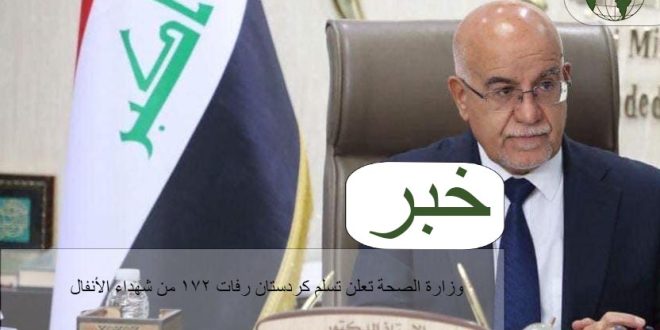 وذكرت الوزارة في بيان، تلقته وكالة الموقف العراقي أنه “بإشراف وزير الصحة صالح مهدي الحسناوي، أجرت وزارة الصحة الاتحادية، مراسيم تسليم رفات 172 شهيداً من شهداء الأنفال إلى لجنة من إقليم كردستان بعد إكمال فحوصات الطبابة العدلية”.