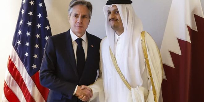 وفي لقائه مع رئيس الوزراء القطري، أعرب بلينكن عن “تقديره للجهود الحاسمة التي تبذلها قطر لضمان إطلاق سراح الرهائن المحتجزين من قبل ح م اس، والهدنة الإنسانية الأخيرة في غ-زة”، بحسب ما قاله المتحدث باسم وزارة الخارجية الأمريكية، مات ميلر.