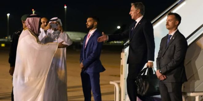 وكان بلينكن وصل إلى السعودية، مساء الجمعة، وهي الدولة الرابعة التي يزورها ضمن جولته الإقليمية على خلفية الاشتباكات بين القوات الإسرائيلية وحركة “حماس”، التي دخلت يومها الثامن، السبت.
