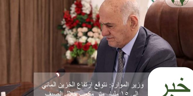 توقع وزير الموارد المائية، عون ذياب، اليوم الإثنين، ارتفاع حجم الخزين المائي خلال الصيف المقبل إلى 15 مليار متر مكعب، فيما أكد إعداد خطة لتأمين مياه الشرب والاستخدامات البشرية وسقي المزروعات.