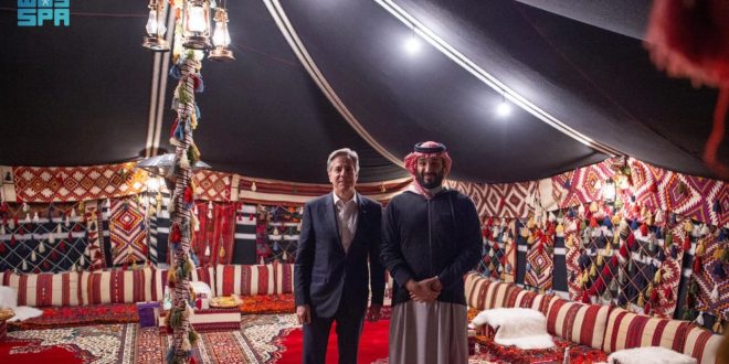 ولي العهد السعودي يلتقي وزير الخارجية الأمريكي في المخيم الشتوي في العلا.. ماذا ناقشا؟