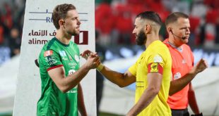 غرّد حساب الدوري السعودي للمحترفين على منصة “إكس” (تويتر سابقاً) عن لقطة مصورة تجمع اللاعب كريم بنزيما ونظيره جوردان هندرسون خلال مواجهة نادي اتحاد جدة ومنافسه الاتفاق، الجمعة. ونشر حساب دوري “روشن” صورة للقاء بنزيما وهندرسون من مباراة سابقة بين أنديتهما السابقة، ريال مدريد الإسباني وليفربول الإنجليزي، في نهائي دوري أبطال …