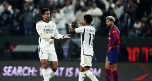 فاز نادي ريال مدريد على نظيره برشلونة بأربعة أهداف مقابل هدف واحد، في نهائي كأس السوبر الإسباني، الذي أقيم على أرض ملعب “الأول بارك”، الأحد، في السعودية. وتناوب على تسجيل أهداف فريق “الميرنغي” كل من فينيسيوس جونيور (ثلاثية) ورودريغو، في الدقائق 7 و10 و39 و64 من زمن المباراة. فيما أحرز …
