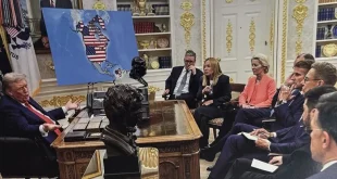 جدّد الرئيس الأميركي دونالد ترمب، اليوم الأربعاء، اتهاماته للصين وروسيا بمحاولة الاستيلاء على جزيرة غرينلاند القطبية، مؤكداً أن الجزيرة القطبية مهمة لأمن الولايات المتحدة القومي. وقال ترمب في كلمة له خلال حضوره مؤتمر دافوس ، إن “الصين وروسيا يواصلان محاولات الاستيلاء على غرينلاند وهذا ما يجب عدم السماح به”، مؤكداً …
