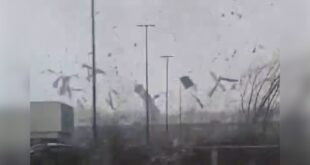 التقط سائق سيارة مشاهد لإعصار في مدينة “ثري ريفرز”، بولاية ميشيغان الأمريكية، وهو يمزق المباني ويقتلع سقف مستودع. وقد يهمك أيضًا: تسببت بأضرار جسيمة.. كاميرا أمنية ترصد عاصفة عنيفة تقتلع…