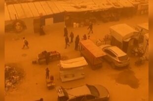 اجتاحت عاصفة رملية المخيمات في جنوب ووسط قطاع غزة، فحوّلت السماء إلى لون برتقالي فاقع …